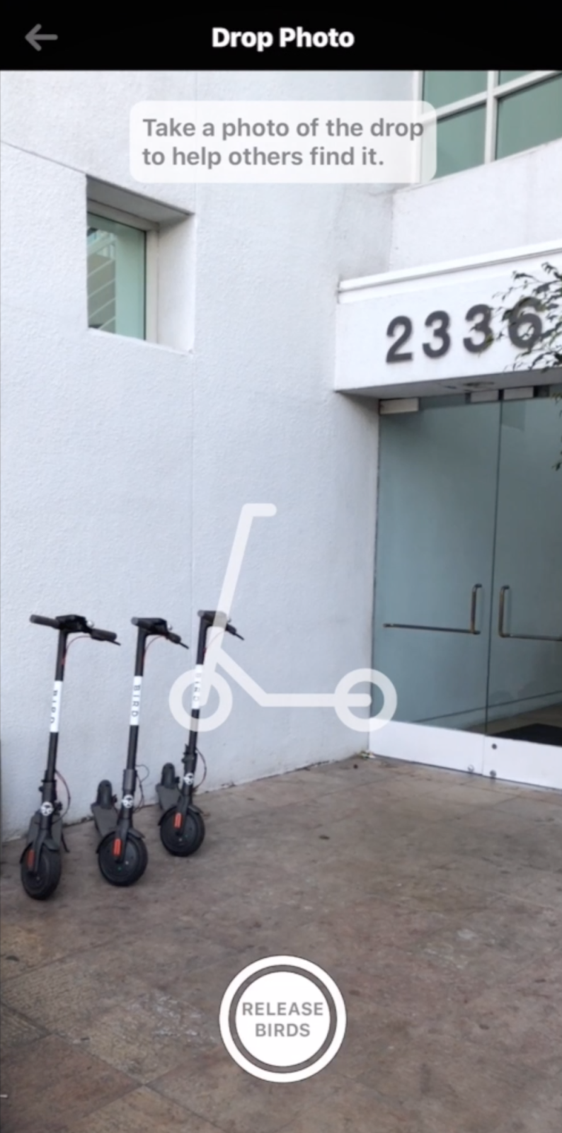Cuando hayas aparcado tus Birds, retrocede unos 3-6 m del Nido y haz una foto de tus Birds para que puedan ser revisados. La foto debe ser vertical para incluir todos los Birds y el entorno.