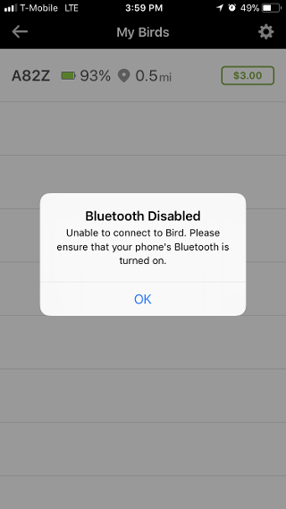 Si recibes el error de "Bluetooth inhabilitado" con el Bluetooth habilitado, intenta activar y desactivar nuevamente el Bluetooth e intenta alejar un poco el Bird de los otros antes de volver a intentar la captura.