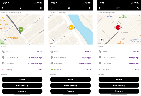 Als je bent aangekomen op de aangegeven locatie en je de Bird niet kunt vinden, tik dan op "Alarm" (met je Bluetooth ingeschakeld) en de Bird zal geluid maken. Je kunt dit gebruiken als aanwijzing voor de locatie van de Bird. Als je de Bird niet kunt vinden en het alarm niet kunt horen, tik dan op ALS VERMIST MARKEREN om andere Chargers te laten weten dat de locatie niet nauwkeurig is.